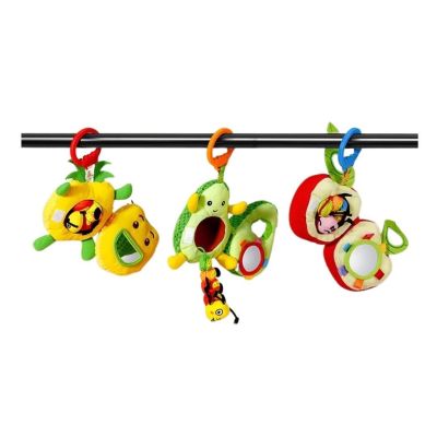 Fruta colgante con espejo y rellena con oruga para entrenamiento de actividades.