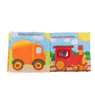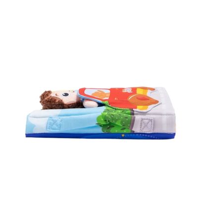 Libro de Tela en 3D para educación temprana. Las páginas contiene escenas y aventuras diferentes donde introducir al personaje, fomentando la imaginación y desarrollo cognitivo del bebé.
